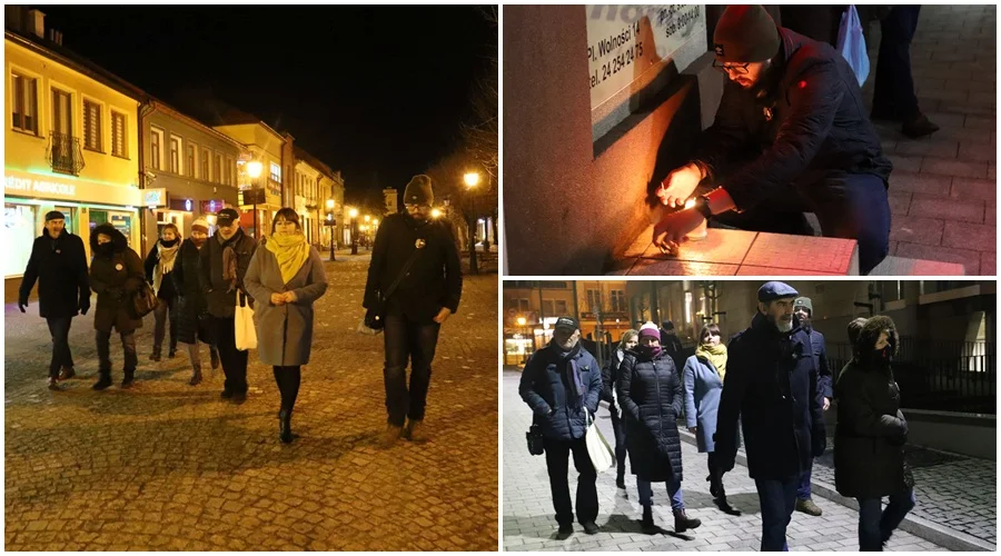Z Placu Wolności milczący protest przeszedł pod biuro Tomasza Rzymkowskiego, by pod jego drzwiami również zostawić znicz.