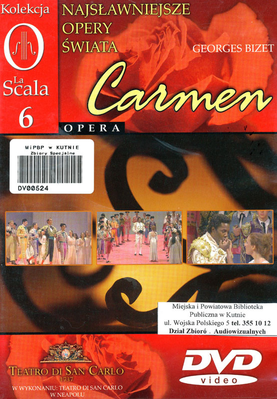 WydarzeniaW piątek, 15 listopada o godz. 15:00 w Dziale Zbiorów Audiowizualnych Miejskiej i Powiatowej Biblioteki Publicznej odbędzie się projekcja filmowa (DVD) opery Georgesa Bizeta "Carmen".Carmen – jest jedną z najpopularniejszych i najchętniej oglądanych oper na świecie. Tym bardziej zdumiewa fakt, że prapremiera dzieła Bizeta w 1875 r. w Paryżu była... totalną klapą, którą autor przeżył bardzo boleśnie.Dzieło, którego główną postacią jest pełna namiętności i erotyzmu Cyganka - przemytniczka popychająca żołnierzy do dezercji, śpiewająca i tańcząca w oberżach – nie bardzo przystawało do konwencjonalnej wizji opery. Początkowo prasa nawoływała nawet do zakazu wpuszczania nieletnich na widownię tego niemoralnego spektaklu. Jednak ta nietypowa, jak dla opery, tematyka szybko stała się największym atutem przedstawienia.