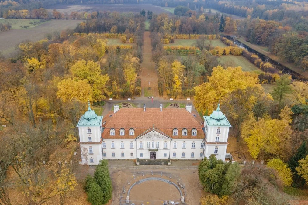 Pałac w Nieborowie, jedna z najwspanialszych barokowych rezydencji w Polsce, od ponad trzystu lat urzeka harmonią architektury, bogactwem wnętrz i atmosferą dawnego dworu. Wzniesiony w latach 1690–1697 dla prymasa Michała Stefana Radziejowskiego według projektu wybitnego architekta Tylmana z Gameren, jest klasycznym przykładem barokowej rezydencji typu „entre cour et jardin”, z reprezentacyjnym dziedzińcem od frontu i ogrodem od strony parku.