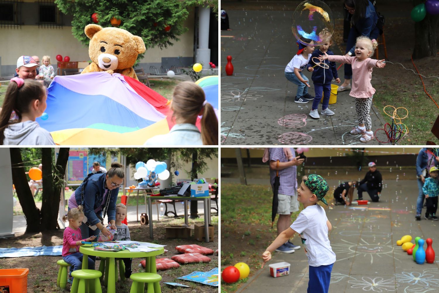 Przygotowano też strefę gier i zabaw a w niej: gry planszowe, tworzenie baniek mydlanych, gra w gumę, chusta animacyjna, głośne czytanie i konkursy z nagrodami. Dodatkową atrakcją jest miś Teddy Eddie.