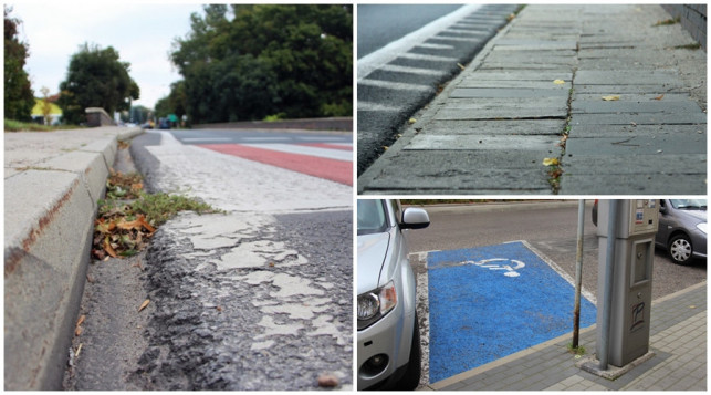 - zbyt wysokie krawężniki przy przejściach dla pieszych - m.in. przy ul. 3 Maja (obok dworca PKP), Mickiewicza (przy Biedronce), ale także przy Centrum Teatru Muzyki i Tańca,