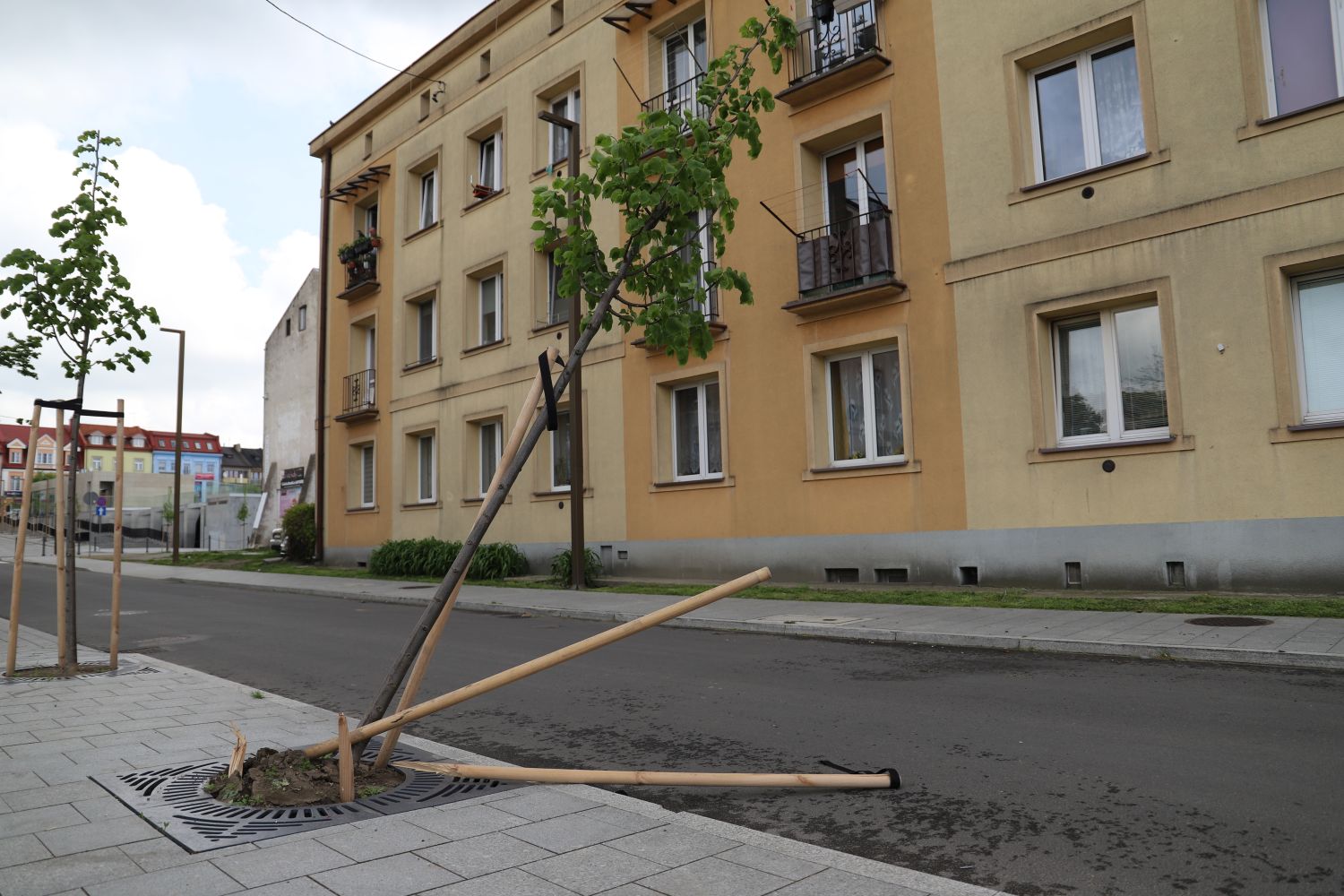 Wandal lub wandale wykazali się sporą finezją, jeszcze większą odwagą i siłą - skutecznie stawili czoła cienkim palikom, które podtrzymywały świeżo posadzone drzewo. Sama roślina także mocno ucierpiała. Efekty tego popisu można zobaczyć w galerii zdjęć.