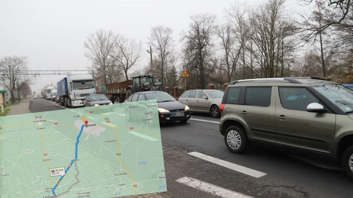 Przejazd dla pojazdów cięższych na trasie Łęczyca (Topola Królewska) - Kutno będzie się odbywał przez Krośniewice (DK91 i DK92).