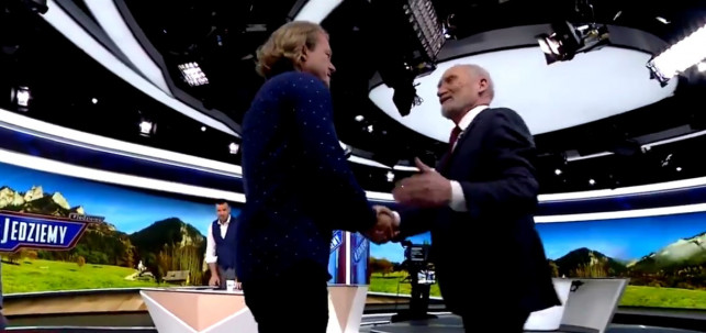 W programie #Jedziemy” w TVP Info Jarosław Jakimowicz, Jacek Wrona i Jacek Liziniewicz dziękowali Antoniemu Macierewiczowi za jego działalność polityczną. Kiedy polityk wychodził ze studia podszedł do niego J. Jakimowicz