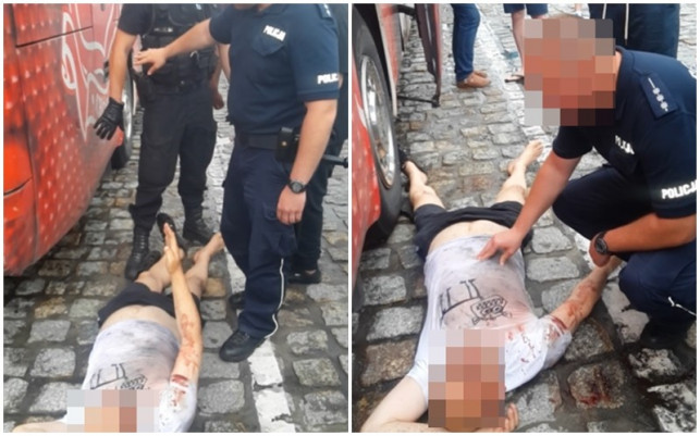 Na filmie natomiast wyraźnie widać, że mężczyzna, który wcześniej, będąc kompletnie pijanym, wdał się w bójkę z przypadkowymi ludźmi, leży zakrwawiony na ziemi. Policjanci rozmawiają z nim w sposób spokojny, chcą mu pomóc, tymczasem pan Jan wyraźnie chce ich sprowokować.
