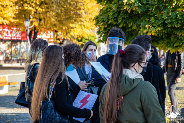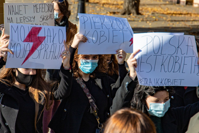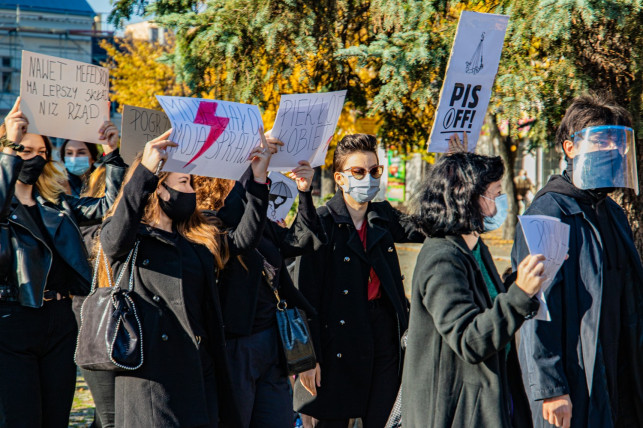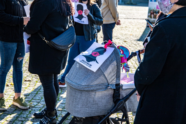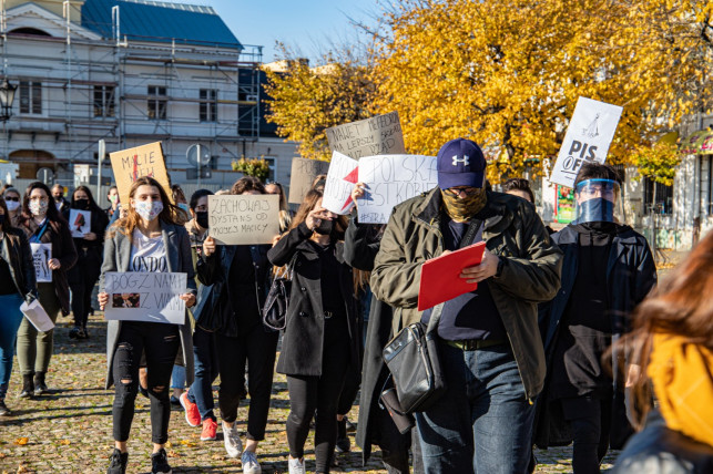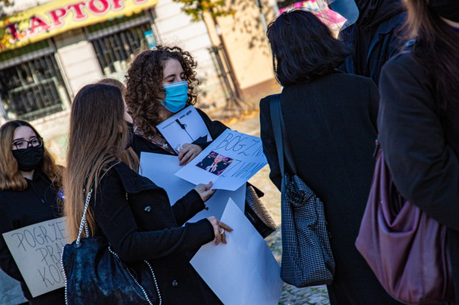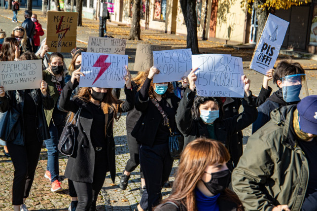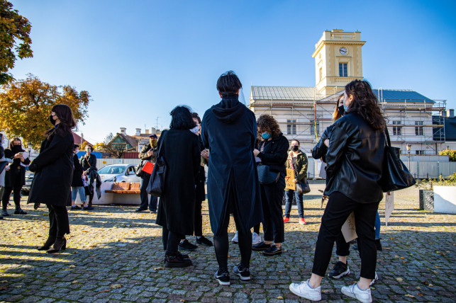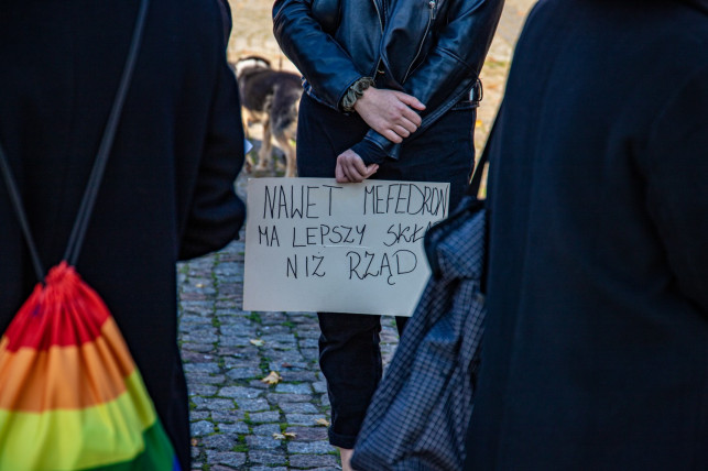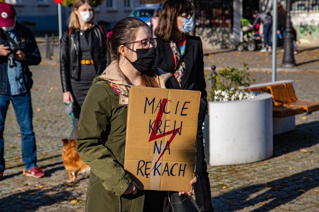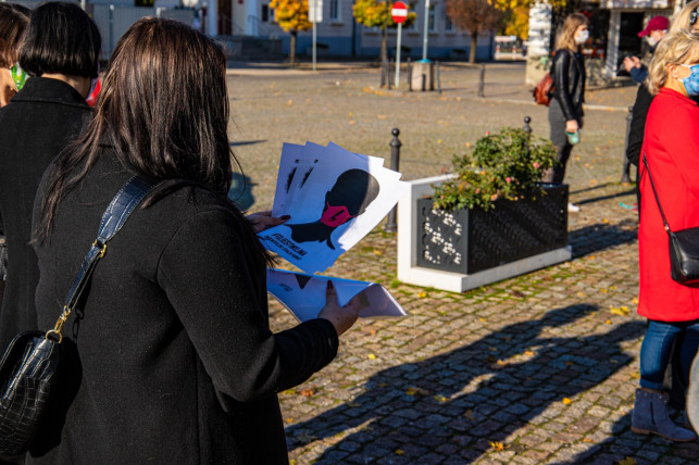 [WIDEO/ZDJĘCIA] Protest w Kutnie ws. aborcji. Plakaty na szyldach posłów, wieszak na pomniku papieża