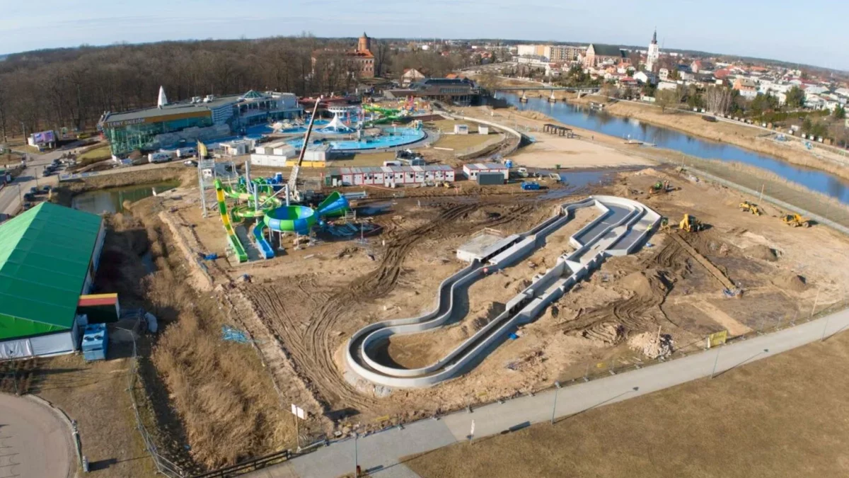 - Zrealizowano już wszystkie prace konstrukcyjne z wyjątkiem konstrukcji toru kolejki wodnej typu flume ride, dla której rozpoczął się montaż konstrukcji stalowej. Trwają prace wykończeniowe, w tym wykonywanie docelowych nawierzchni i ciągów komunikacyjnych, małej architektury oraz zagospodarowanie stref, takich jak labirynt, ogród wody, tor dla mini jeepów, zewnętrzny klub fitness oraz strefy relaksu. Zamontowano również zespół czterech zjeżdżalni, a przy basenach schładzających zakończono montaż niecek i obecnie wykonywane są instalacje elektryczne oraz sanitarne - wyjaśnia Budimex.