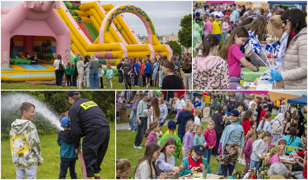 Przed budynkiem szkoły na dzieci i młodzież czekała prawdziwa moc atrakcji: gry i zabawy z animatorami, malowanie buziek, strefa dmuchańców czy przejażdżka quadem.