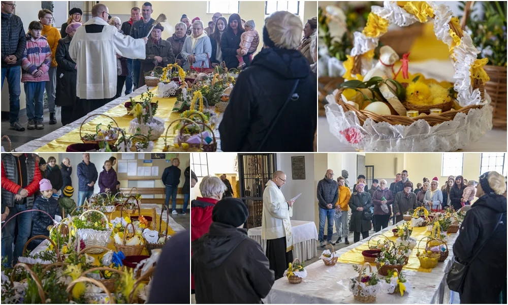 Mury kościoła pw. św. Jana Chrzciciela od samego rana wypełniły się mieszkańcami niosącymi wielkanocne święconki. Kolorowe pisanki, czekoladowe zające i wymyślne dekoracje - tak wyglądały świąteczne koszyczki. Do świątyń nieśli je wszyscy - rodziny z dziećmi, młodzież i osoby starsze. Wielu wiernych po poświęceniu pokarmów zatrzymywało się także na modlitwę przy grobie Jezusa.