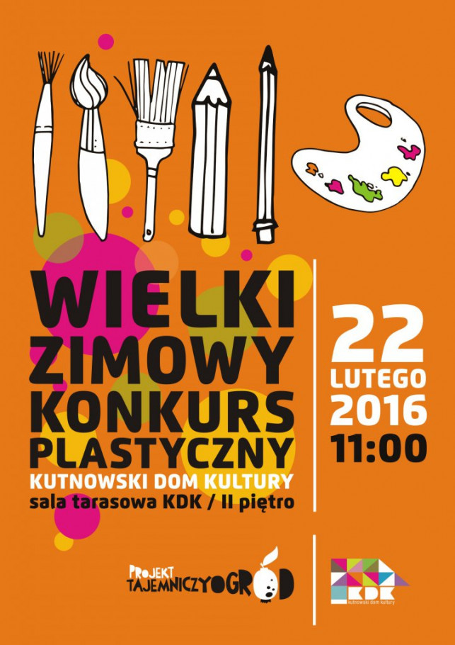 22 lutego o godz. 11 KDK zaprasza dzieci w wieku 5 - 15 lat na kolejną edycję feryjnego Wielkiego Zimowego Konkursu Plastycznego. Jak zwykle temat jest do końca niespodzianką i poznacie go dopiero w dniu konkursu.