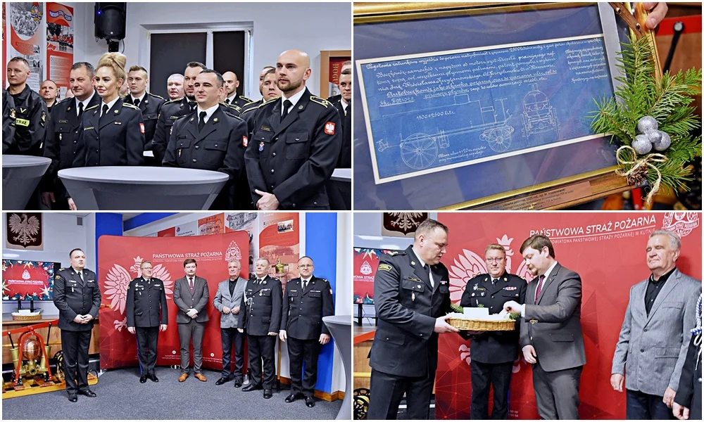 W trakcie wigilijnego spotkania Komendant Powiatowy PSP w Kutnie wręczył Łódzkiemu Komendantowi Wojewódzkiemu PSP w Łodzi pamiątkową rycinę przedstawiającą autobeczkowóz – sikawkę pożarną z 1925 r.