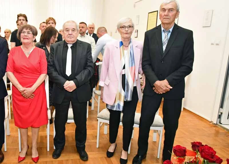 Jak informuje Urząd Miejski, przesunięcie terminu organizacji Jubileuszu Złotych Godów z ubiegłego roku na 24 kwietnia 2026 wynika z przedłużenia się niezależnego od Urzędu Miejskiego w Piątku okresu oczekiwania na medale, którymi uhonorowani zostaną Jubilaci. W uroczystości udział wzięli Państwo: