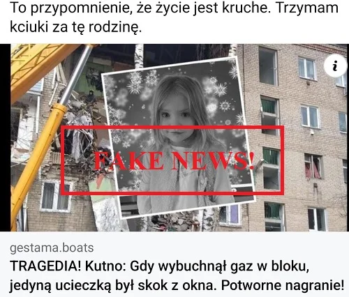 Na pierwszy rzut oka widać, że strona, na której rzekomo zamieszczono informacje o zdarzeniu jest podejrzana, a podany portal informacyjny nie istnieje. Niestety wiele osób pod wpływem dramatycznie brzmiącego apelu udostępniło link z nieprawdziwymi wiadomościami.