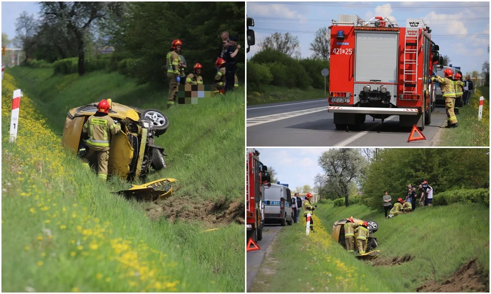 Do zdarzenia doszło około godz. 13:00 na ulicy Sklęczkowskiej na DK 92 w Kutnie. Z nieznanych na chwilę obecną przyczyn samochód osobowy wypadł tam z drogi i dachował w rowie.