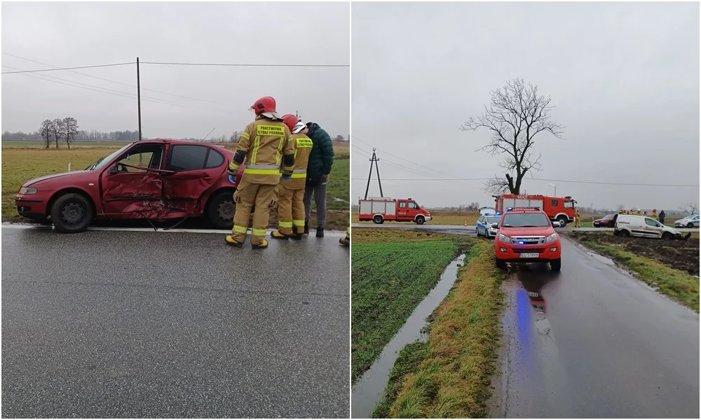 Wypadek na drodze wojewódzkiej nr 703 w Piątku | fot. KP PSP w Łęczycy