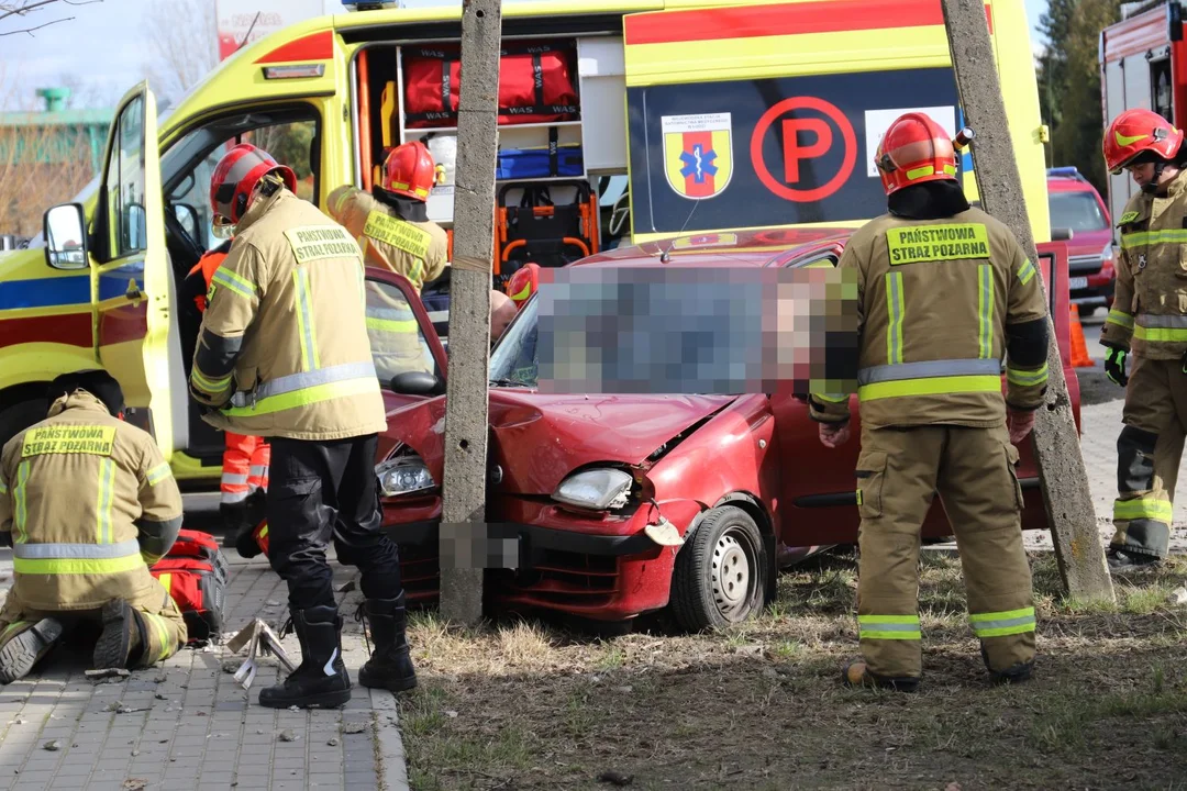 Wypadek w Kutnie. Samochód rozbił się o słup, są ranni [ZDJĘCIA]