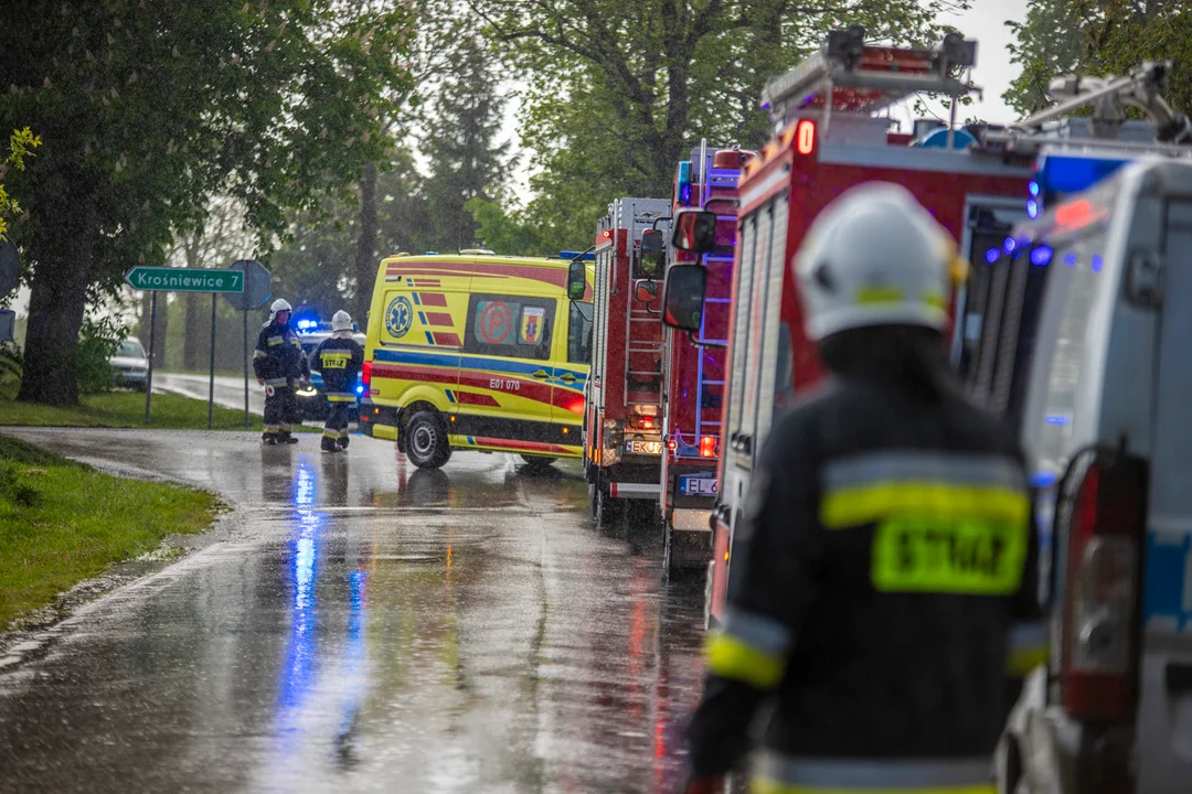 Droga w okolicy skrzyżowania jest zablokowana, służby kierują ruchem.