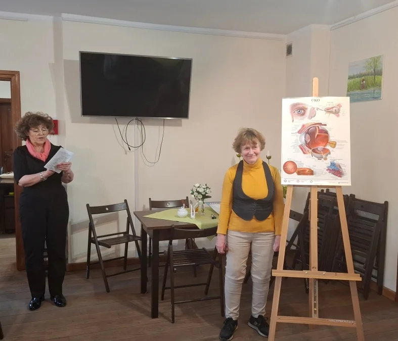 19 marca 2026 r. w Dworku Modrzewiowym w ramach spotkań czwartkowych odbyła się prelekcja okulisty dr Ewy Augustyniak nt. „Problemy ze wzrokiem w wieku senioralnym”. Słuchacze i słuchaczki SUTW dowiedzieli się, jakie mogą wystąpić problemy ze wzrokiem, z którymi zmagają się osoby starsze wskutek naturalnego efektu starzenia się organizmu ale również jaki wpływ mają choroby (cukrzyca, nadciśnienie) na prawidłowe widzenie.
