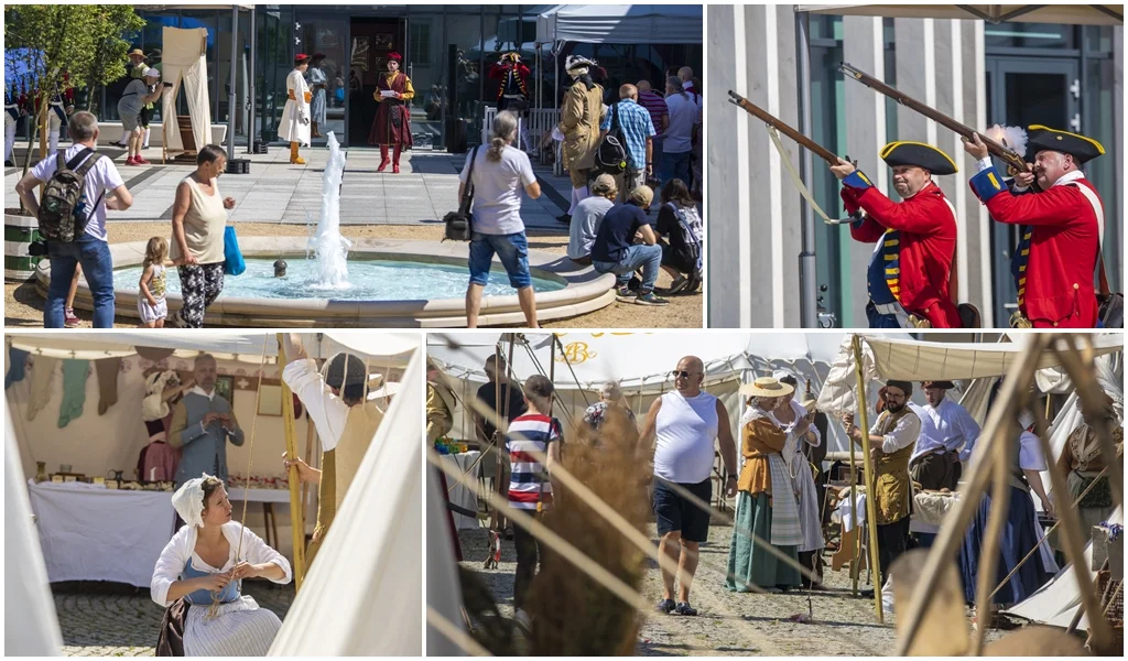 Przed muzem rozstawiły się natomiast kramy i stanowiska rzemieślnicze, gdzie spotkamy kowali, bartów, hutników, szewcy czy mydlarkę. Już o godz.12.30 z placu Wolności wyruszy uroczysta parada oddziałów, które zaprezentują sie królowi i publice pod pałacem Saskim; wybrzmi również salwa honorowa.