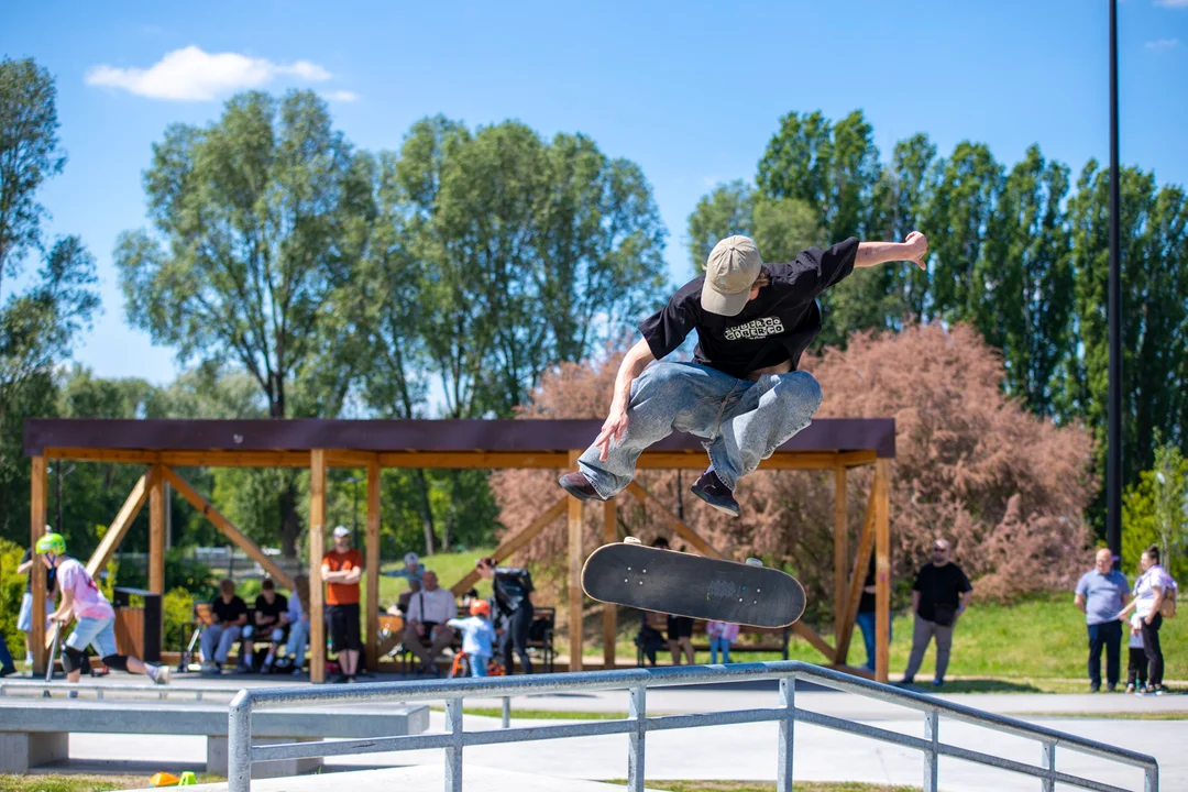 Wszystko dzieje się w ramach Sportowej Wiosny 2025 – wydarzenia, które łączy sport, zabawę i solidną dawkę dobrej energii. Tutaj nie ma miejsca na nudę – co chwila ktoś śmiga po rampie albo robi tailwhipa, a obok ekipa dzieciaków uczy się pierwszych trików pod okiem instruktorów.