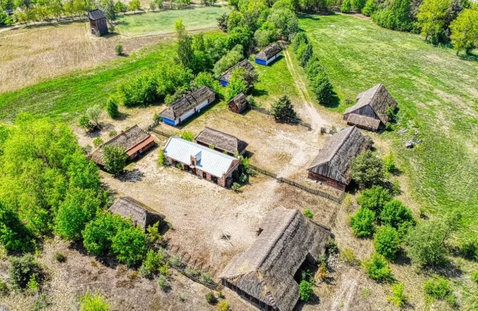 Znajdziemy tu małą architekturę – kapliczki, studnie i przydrożne krzyże. Zobaczycie, jak kiedyś wyglądały wnętrza domostw. Są budynki rzemieślnicze i ochrony przeciwpożarowej. Na teren skansenu trafił zespół sakralny z Wysokienic złożony z drewnianej, jednonawowej świątyni datowanej na 1758 r. oraz dzwonnicy z 1774 r. Obok świątyni zlokalizowano budynek plebanii z Pszczonowa z przeł. XIX/XX w. i Dziedzictwa Narodowego.