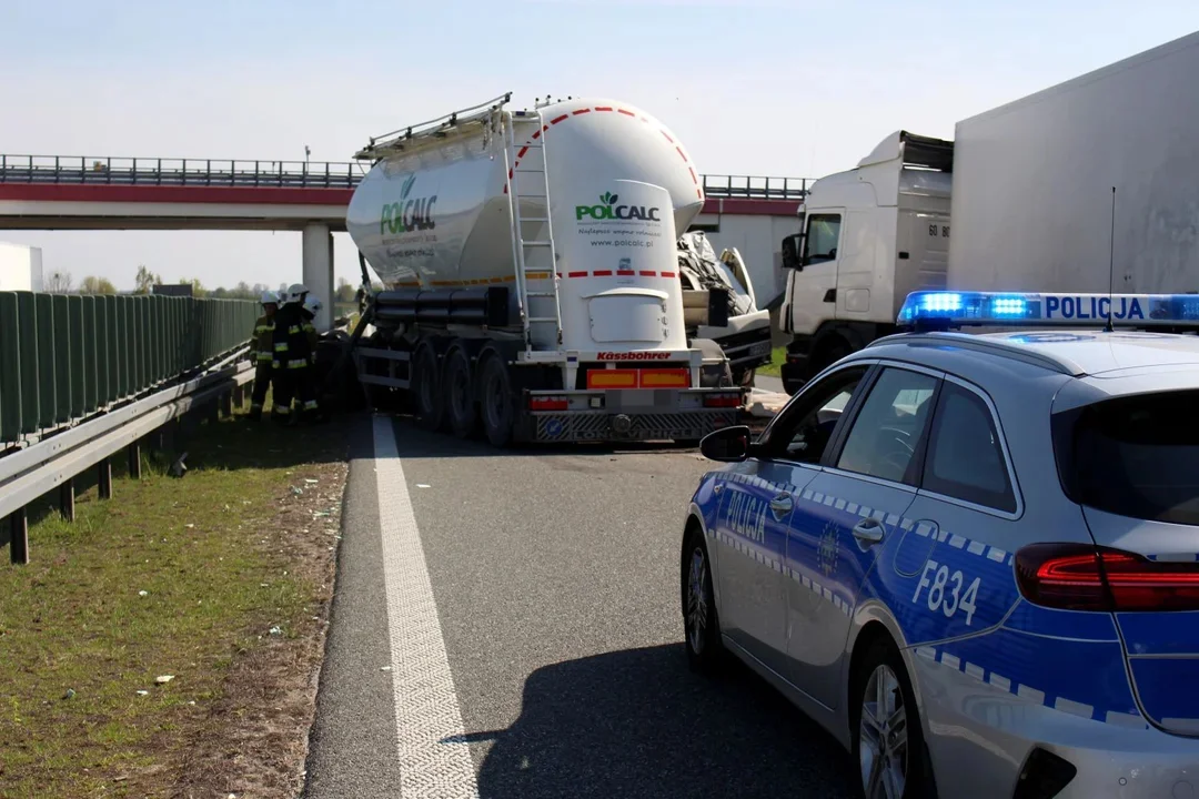 Z nieznanych na chwilę obecną przyczyn zderzyły się tam dwa samochody ciężarowe. Ze wstępnych ustaleń wynika, że prawdopodobnie jedna osoba została poszkodowana.