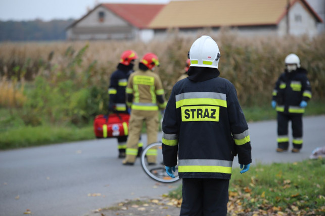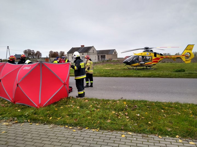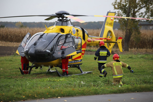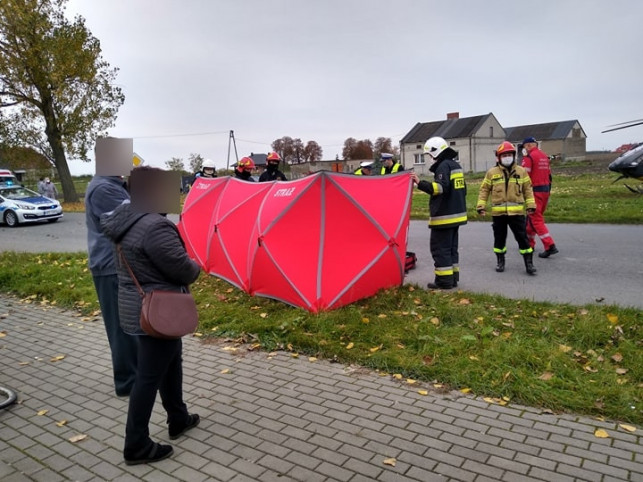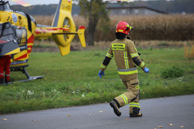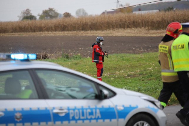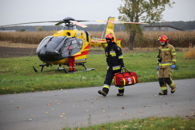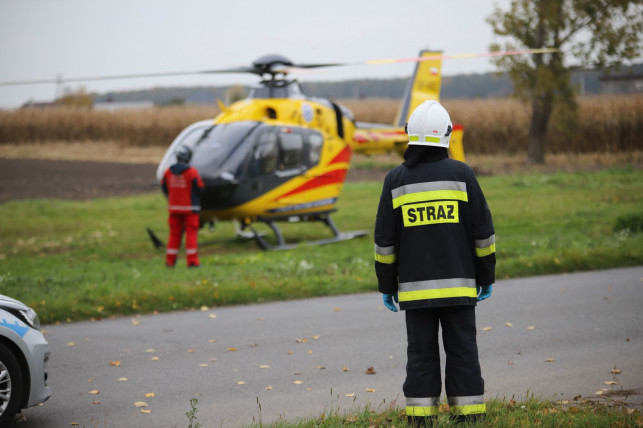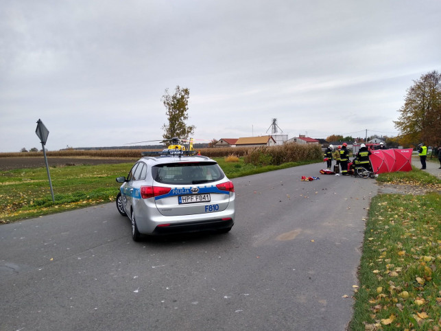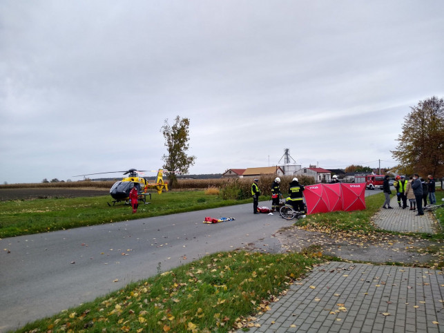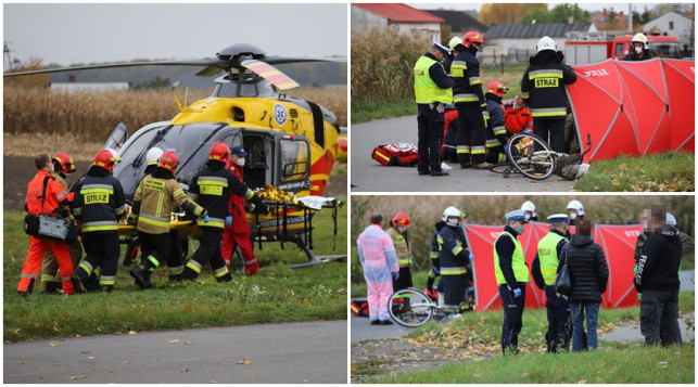 [ZDJĘCIA] Dramat pod Kutnem: samochód potrącił rowerzystkę. W akcji śmigłowiec LPR