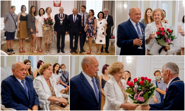 Uroczystość poprowadził prezydent Zbigniew Burzyński, który odznaczył jubilatów medalami za długoletnie pożycie małżeńskie. Nie mogło zabraknąć także kwiatów, symbolicznej lamki szampana oraz życzeń i prezentów od najbliższych.