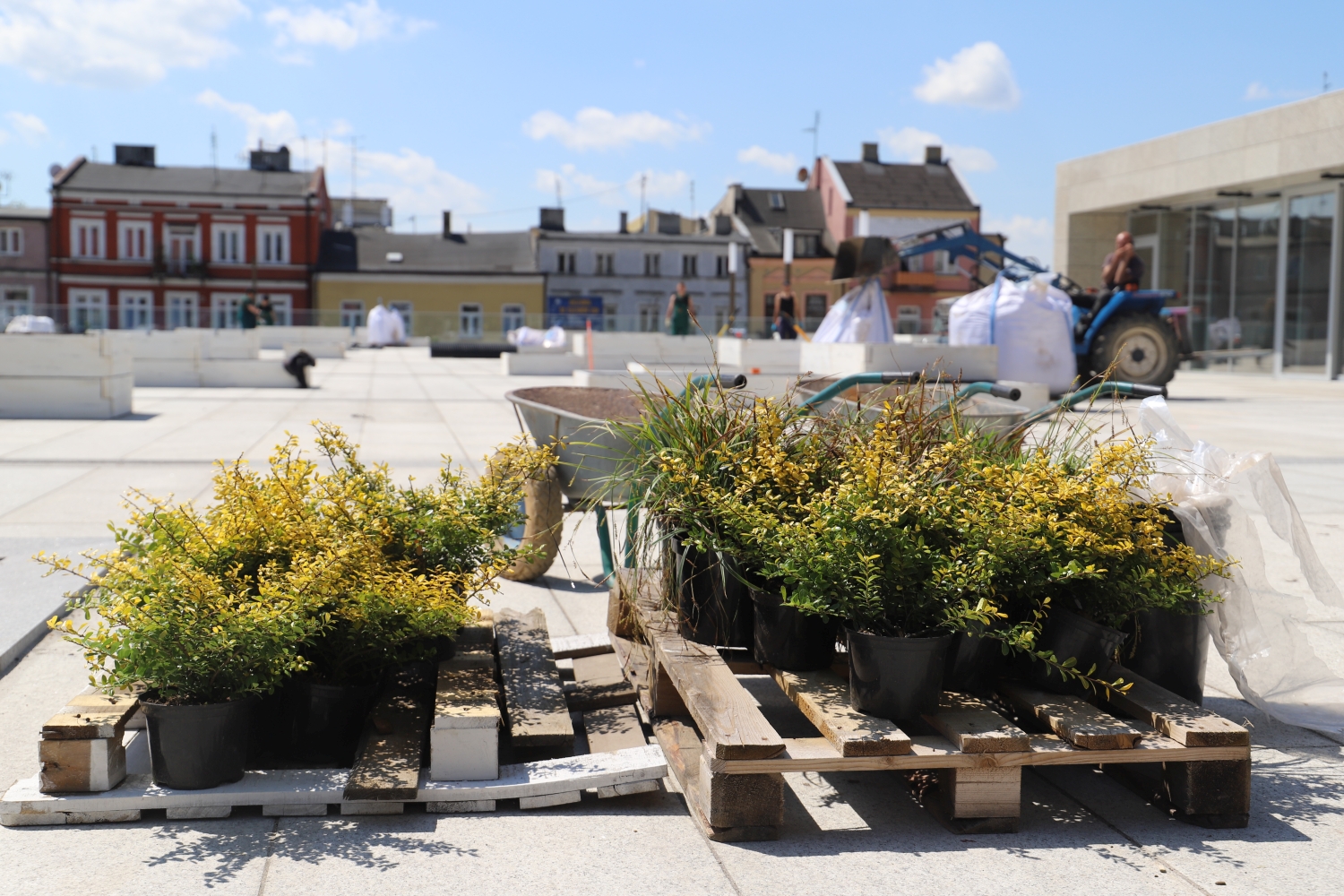 Przez poprzednie dwa dni montowane były gazony i usypywano ziemię, dzisiaj natomiast wykonywane są nasadzenia. Na Placu Wolności w pocie czoła pracuje zespół z Ogólnopolskiego Stowarzyszenia Twórców Ogrodów znane jest mieszkańcom Kutna np. ze Święta Róży.