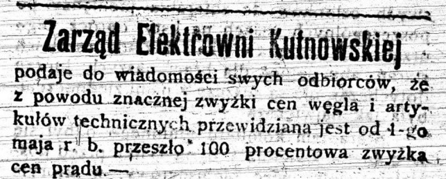[ZDJĘCIA] Przeszło 100-procentowa zwyżka cen prądu! I to w Kutnie... 100 lat temu | 1 / 71 / 7 | 2 / 72 / 7 | 3 / 73 / 7 | 4 / 74 / 7 | 5 / 75 / 7 | 6 / 76 / 7 | 7 / 77 / 7