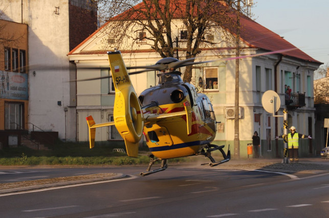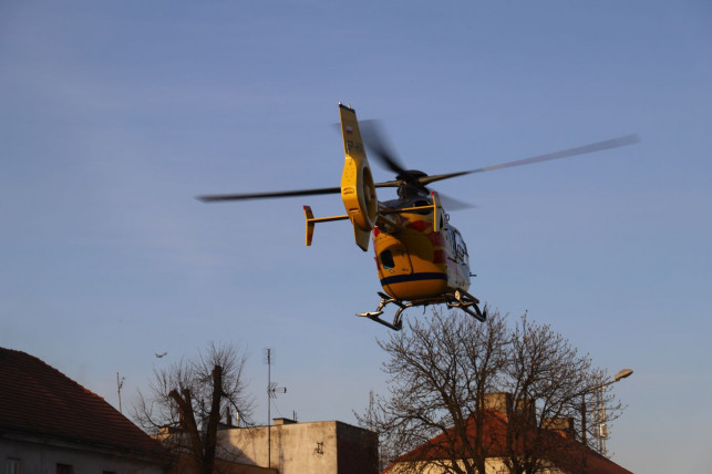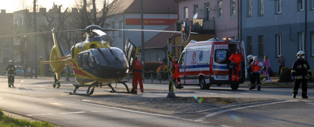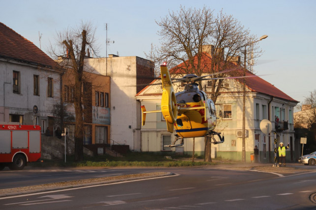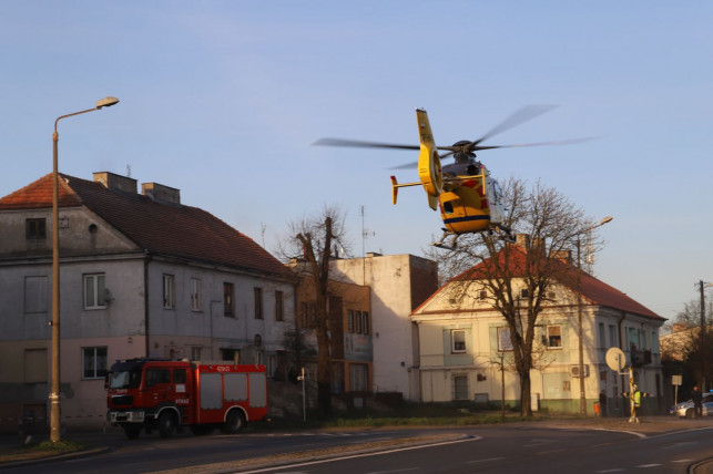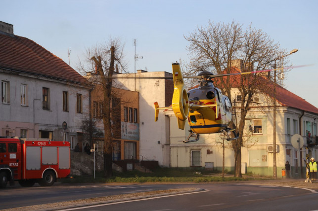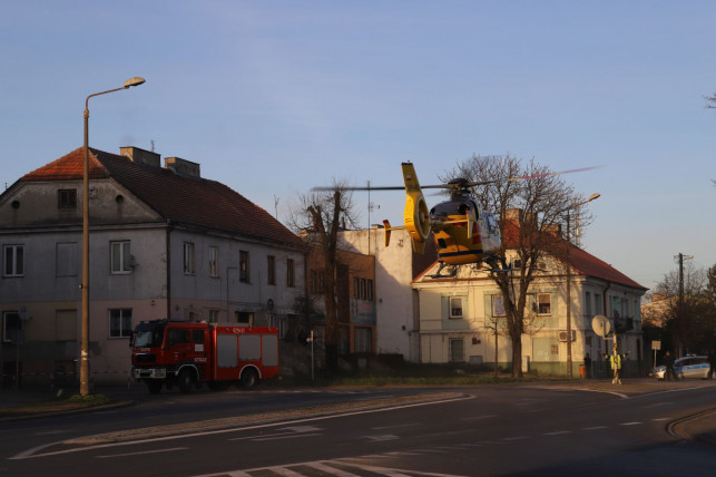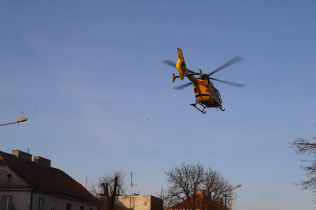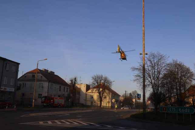 [ZDJĘCIA] Śmigłowiec pogotowia w centrum Krośniewic. Zabrał 3-letnie dziecko