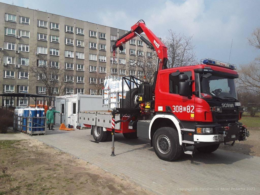 [ZDJĘCIA] Strażacy z Łodzi przywożą tlen do Kutna. Będzie podawany chorym na COVID-19