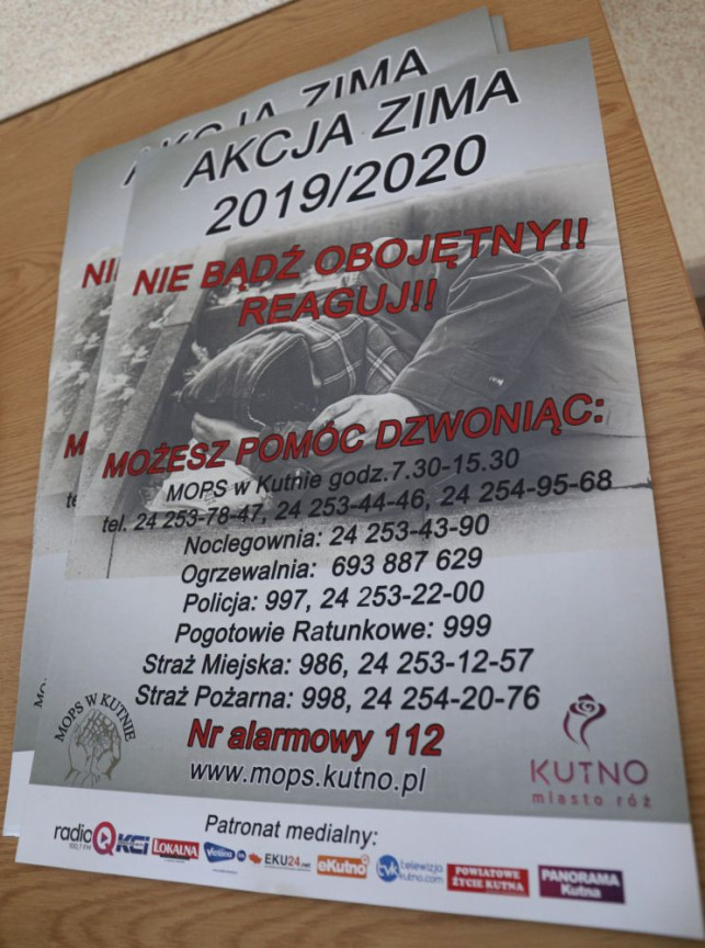 MOPS apeluje do mieszkańców Kutna, by w przypadku napotkania osoby bezdomnej poinformować ją o możliwości skorzystania z pomocy lub, jeśli sytuacja tego wymaga, nie bać zadzwonić pod numer alarmowy.