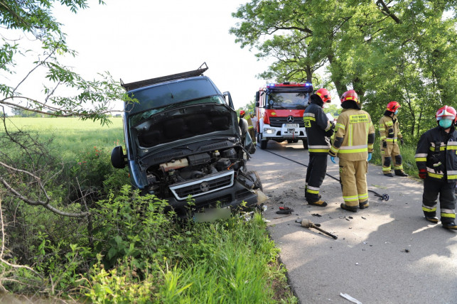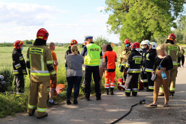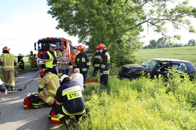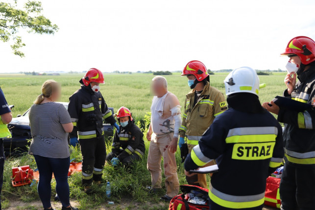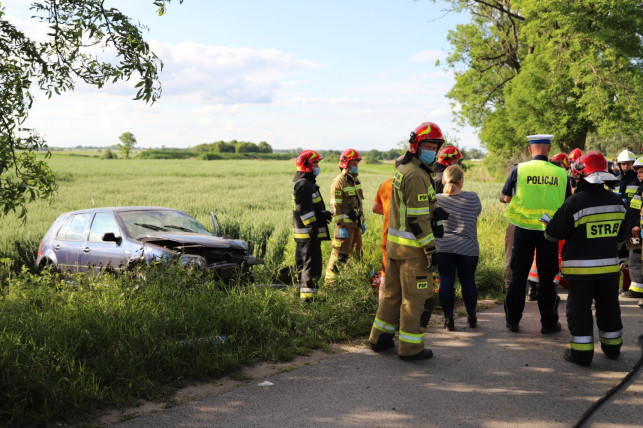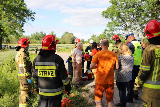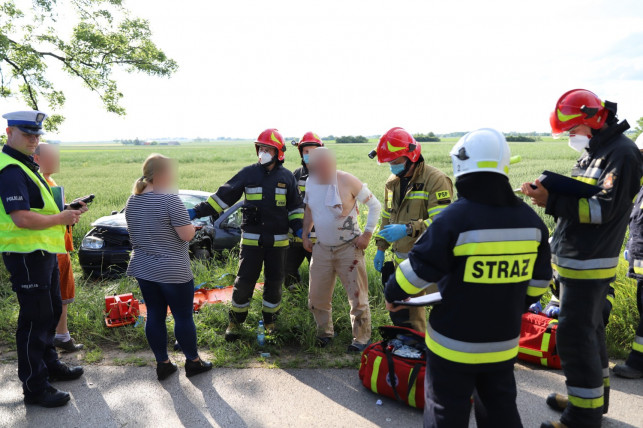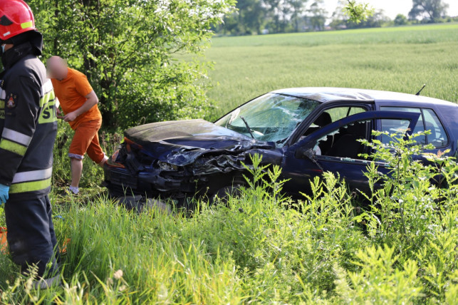 [ZDJĘCIA] Wypadek pod Kutnem. Dostawczak i osobówka w rowie, trwa akcja służb