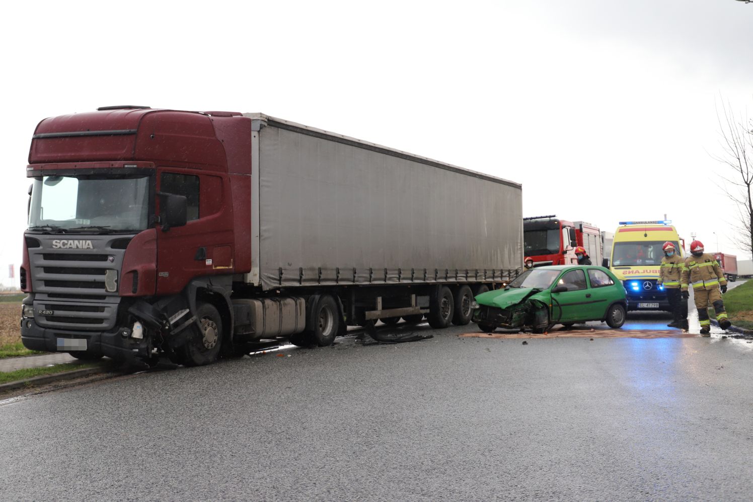 Do wypadku doszło ok. godz. 14.10 na łuku jezdni ulicy Intermodalnej w Kutnie. W zdarzeniu brał udział osobowy opel corsa i samochód cięzarowy marki Scania.