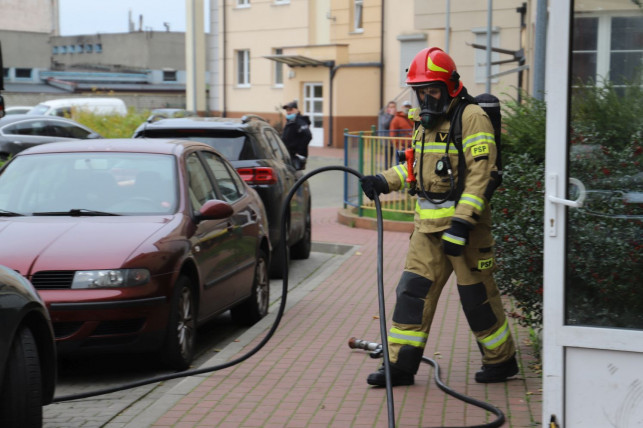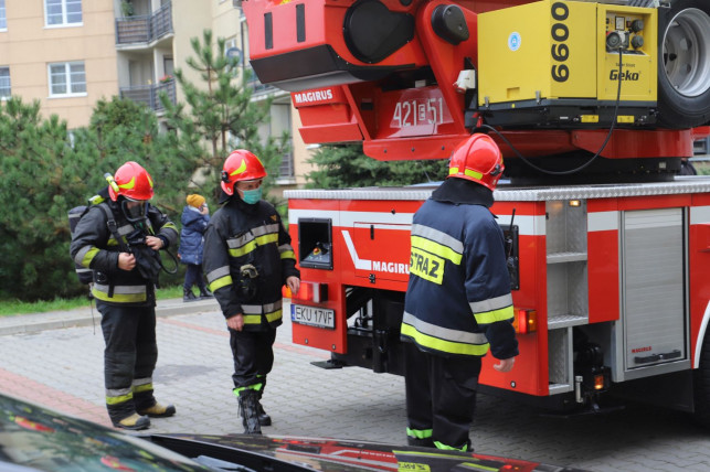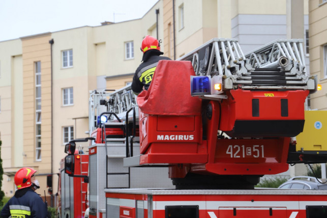 [ZDJĘCIA] Zapalił się... płyn do dezynfekcji. Ranny mieszkaniec, akcja straży