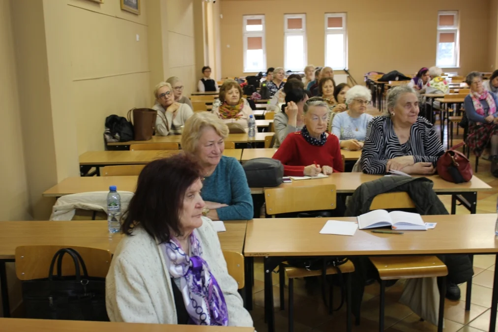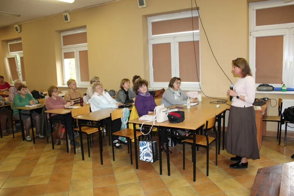 Zaprezentowano także m.in. produkty zawierające dużo błonnika regulującego pracę jelit (nasiona chia, babka płesznik). Prelegentka zwróciła również uwagę na najczęściej popełnianie błędy żywieniowe (pomijanie posiłków, nadmiar soli i cukru, dieta uboga w białko, mało warzyw, owoców i płynów). Na zakończenie wykładu było wiele pytań od seniorów, na które chętnie odpowiadała gościni.