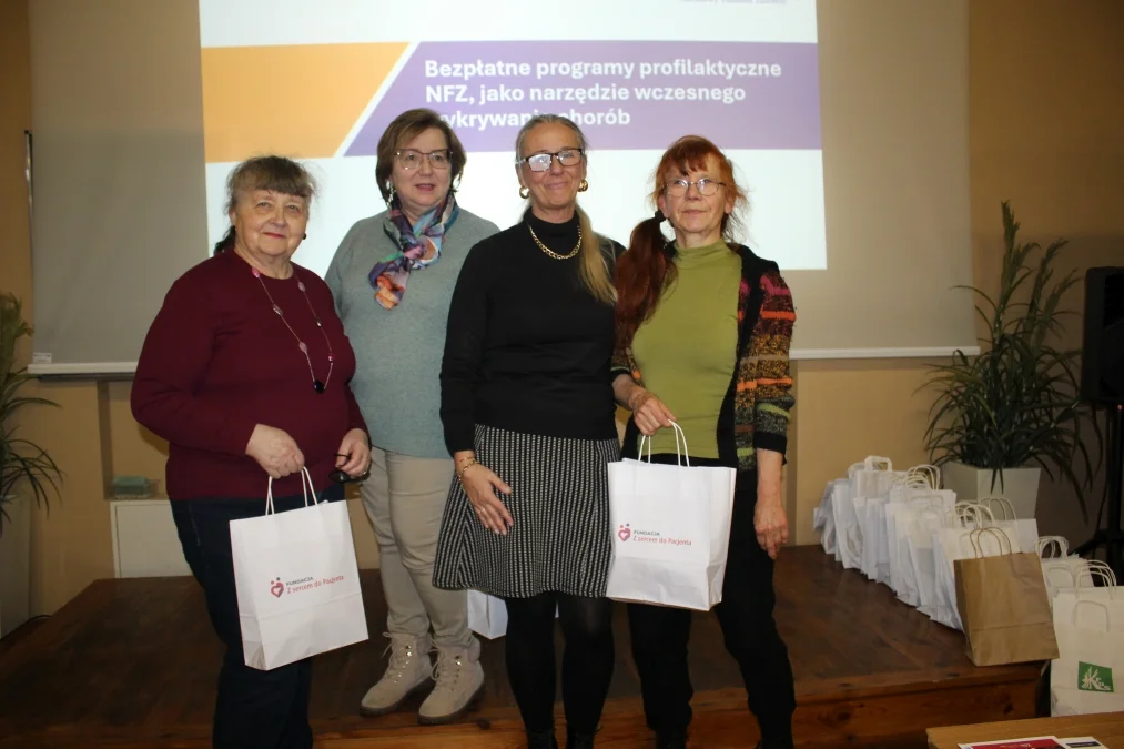 Zebrani seniorzy wysłuchali przygotowanego cyklu wykładów. Wiele interesujących informacji uzyskali podczas prezentacji pt. „Bezpłatne programy profilaktyczne NFZ, jako narzędzie wczesnego wykrywania chorób” przygotowanej przez Justynę Wachowicz. Dowiedzieli się, jak ważna jest profilaktyka w dojrzałym wieku. Pozwala na wczesne wykrycie, a co za tym idzie zwiększenie szans na skuteczne leczenie.