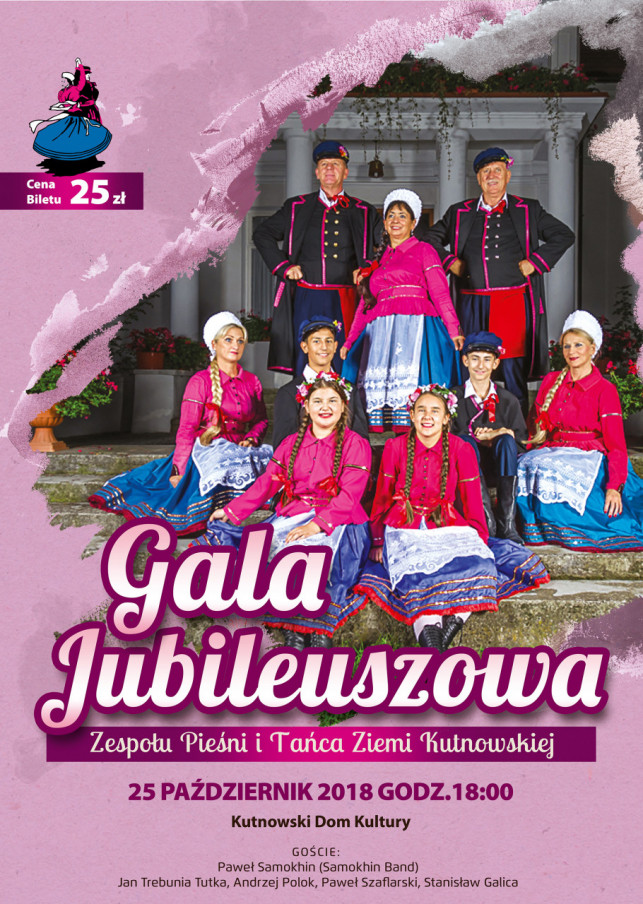 Zespół Pieśni i Tańca Ziemi Kutnowskiej zaprasza na jubileusz 25-lecia, który odbędzie się 25 października (czwartek) o godz. 18:00 w Kutnowskim Domu Kultury. Gośćmi będą: