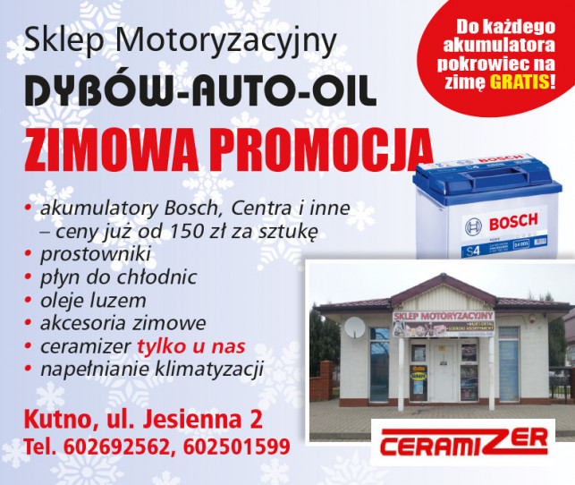 PONADTO OFERUJEMY:- CZĘŚCI DO WSZYSTKICH MAREK SAMOCHODÓW - OLEJE SILNIKOWE LUZEM (MOBIL,ORLEN,LOTOS) - FILTRY OLEJU, POWIETRZA,PALIWA I KABINOWE - PŁYNY - AKUMULATORY - SZYBY - ŻARÓWKI ZWYKŁE I LEDY - KOSMETYKI I INNE AKCESORIA DLA ROLNICTWA: OLEJE LUZEM ( SUPEROL, LUX, HIPOL, TURDUS, OLEJ HYDRAULICZNY) FILTRY, AKUMULATORYZAPRASZAMY W GODZ. 8.00- 17.00 pn.-pt 8.00-14.00 sobota KUTNO OS. DYBÓW UL. JESIENNA 2 (przy kościele)tel. 602-692-562, 602-501-599