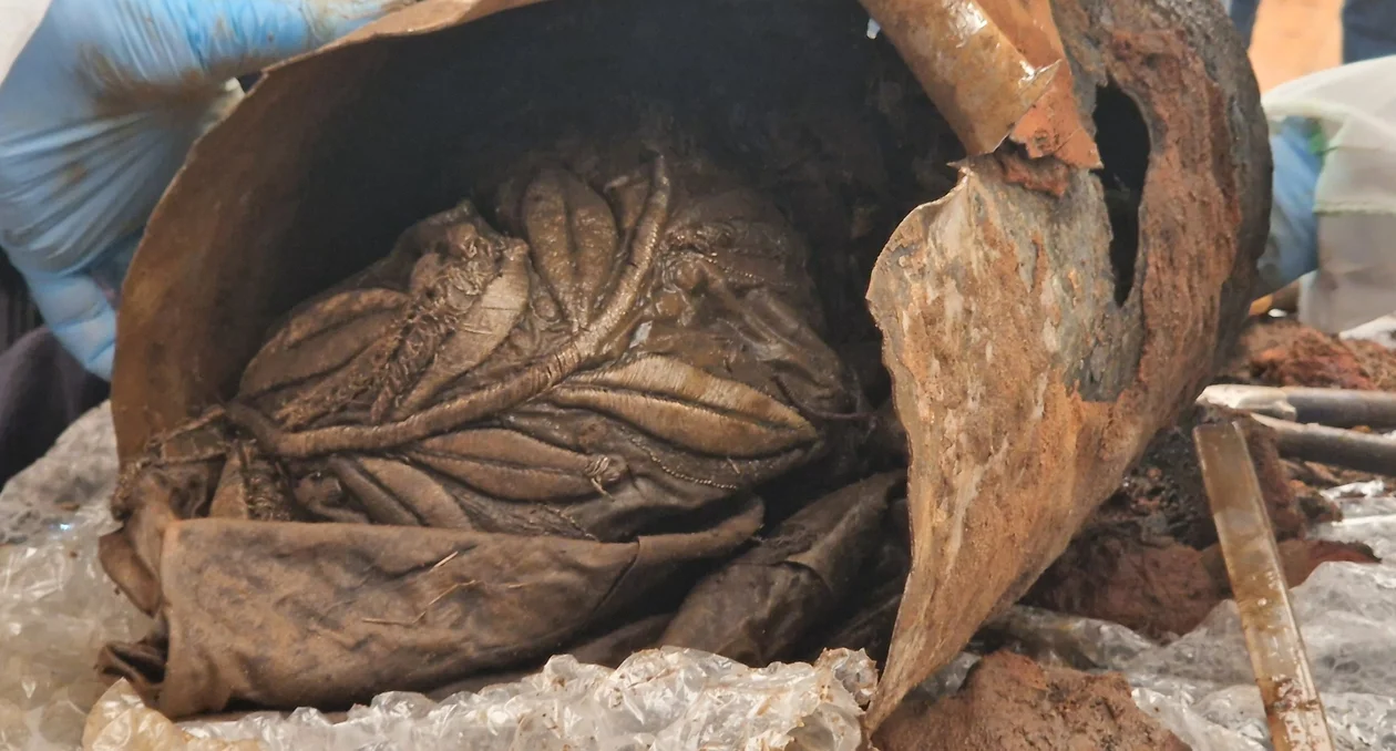Wewnątrz pojemnika zneleziono zwiniety płat materiału, którym według pierwszych ustaleń miał być zaginiony we wrześniu 1939 roku sztandar 37 Łęczyckiego Pułku Piechoty im. ks. Józefa Poniatowskiego.